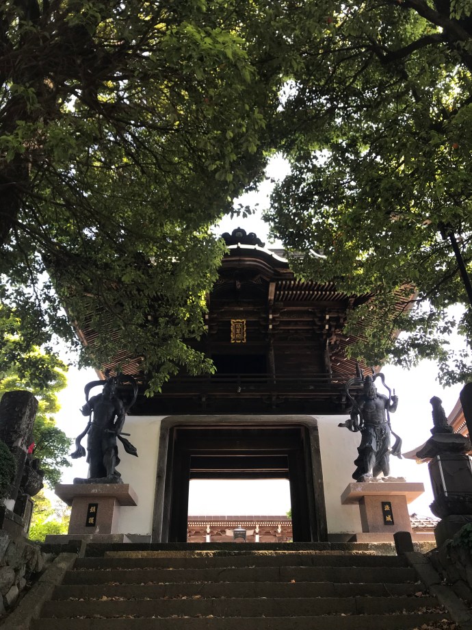 お寺の境内から、山門を見ると、美しい‟自然のキャンバス画”が出現します。