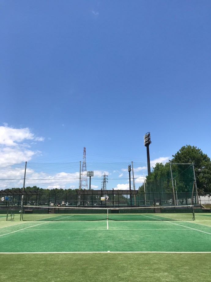 野球場隣には、オムニ(砂入人工芝)のテニスコートがあります。こちらもナイター施設があり、日中から夜間まで、テニス愛好家の皆さんがプレーを楽しむ姿が見られます。
