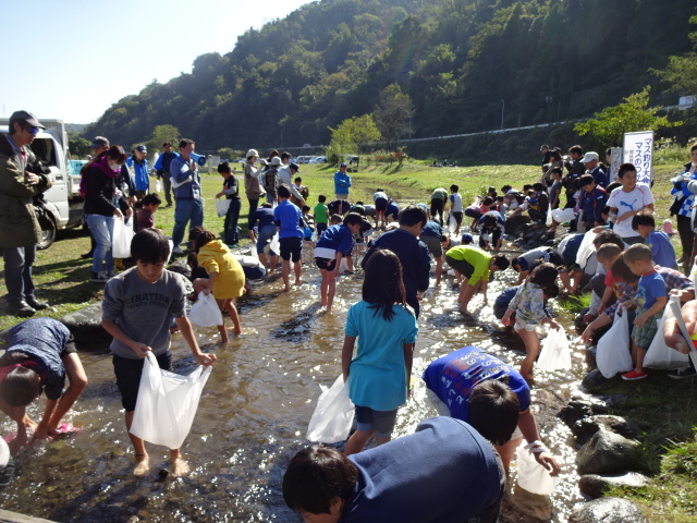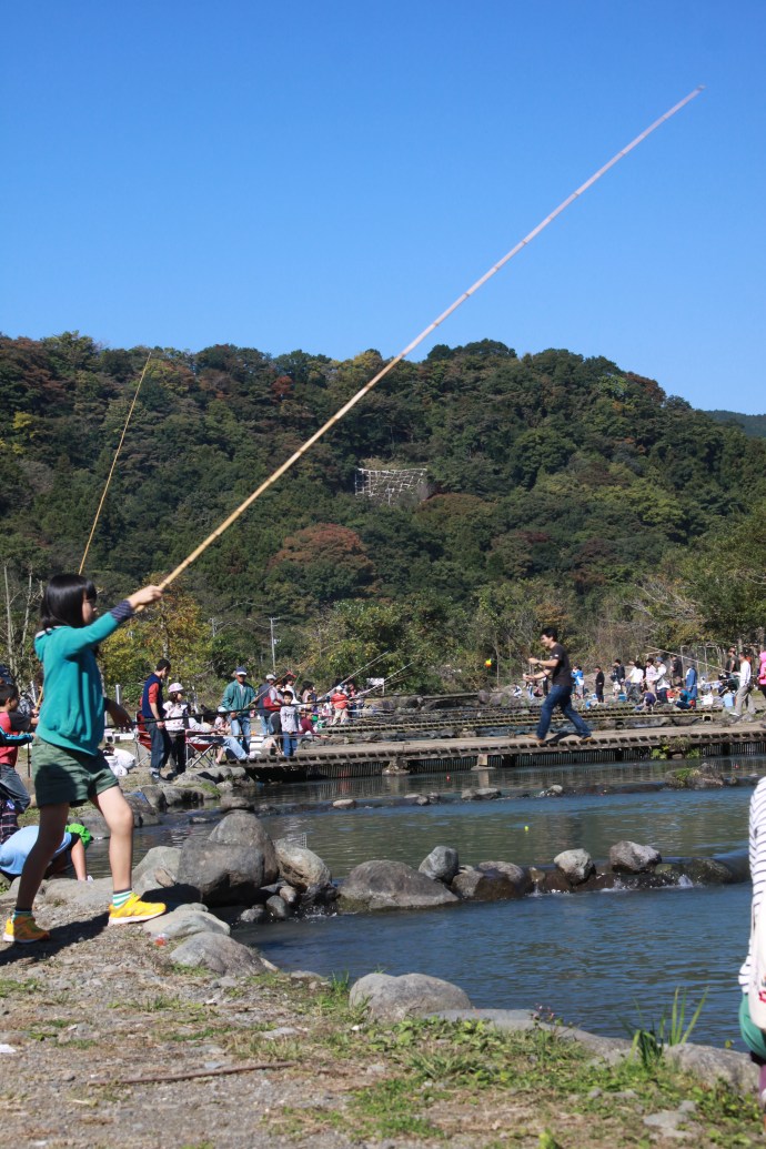 マス釣場内にある「つかみ取り」は、子供たちに大人気です!※写真は11月の「秋のマス釣り大会」の様子