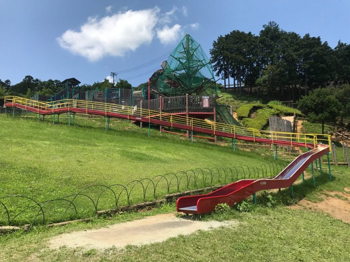 冒険の森。巨大なアスレチックがそびえ立ち、週末には親子連れで大変な賑わいをみせる場所です。※アスレチックの使用は年齢制限があります。詳しくはコチラをご確認ください。