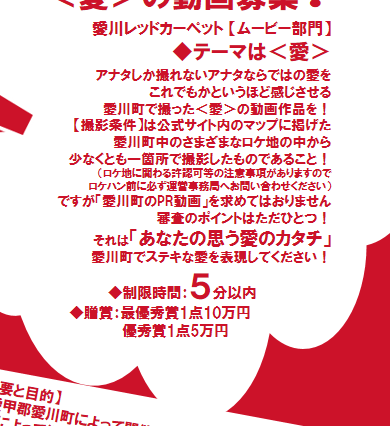 時間の制約があり、愛川町に何度も撮影には来られない!!そんな方がいましたら、少なくとも1場面は、指定したロケ地で撮影し、その場面を生かした、素晴らしい作品を応募してみてはいかがでしょう。