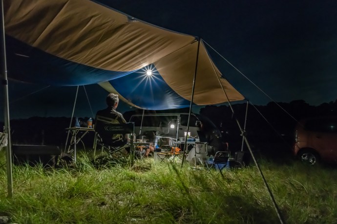 【審】光と夜空のコントラストが美しく、アウトドアを楽しんでいる様子が伝わってくる。