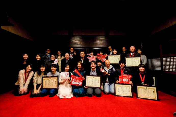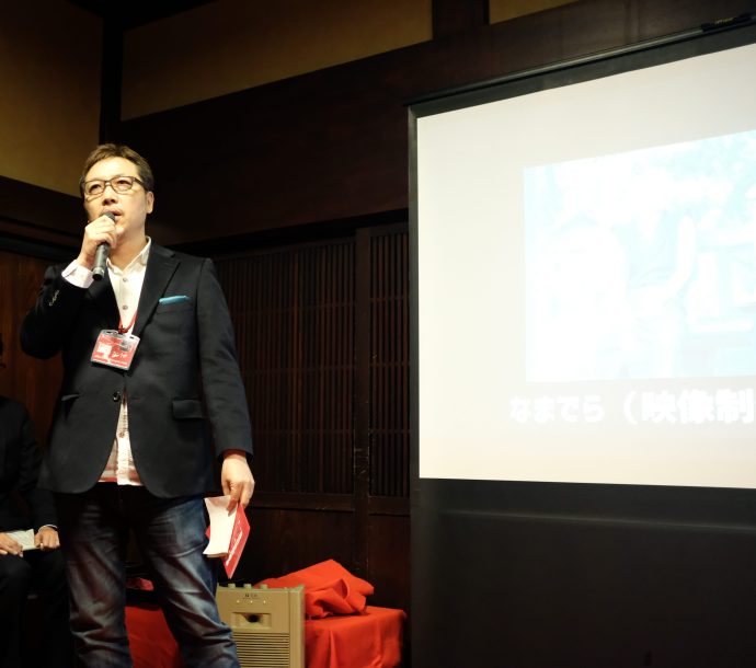 真紅の絨毯が敷き詰められた山十邸の大広間には、激戦の一次審査を勝ち抜き、最終審査に進んだ「ファイナリスト」作品関係者の皆さんが集結。運営事務局では、開会前に愛川レッドカーペット「特製どら焼」を用意し、列席された皆様にお配りするなど、和やかな雰囲気で発表会を迎えました。