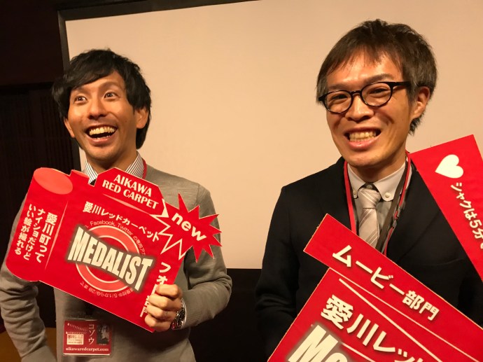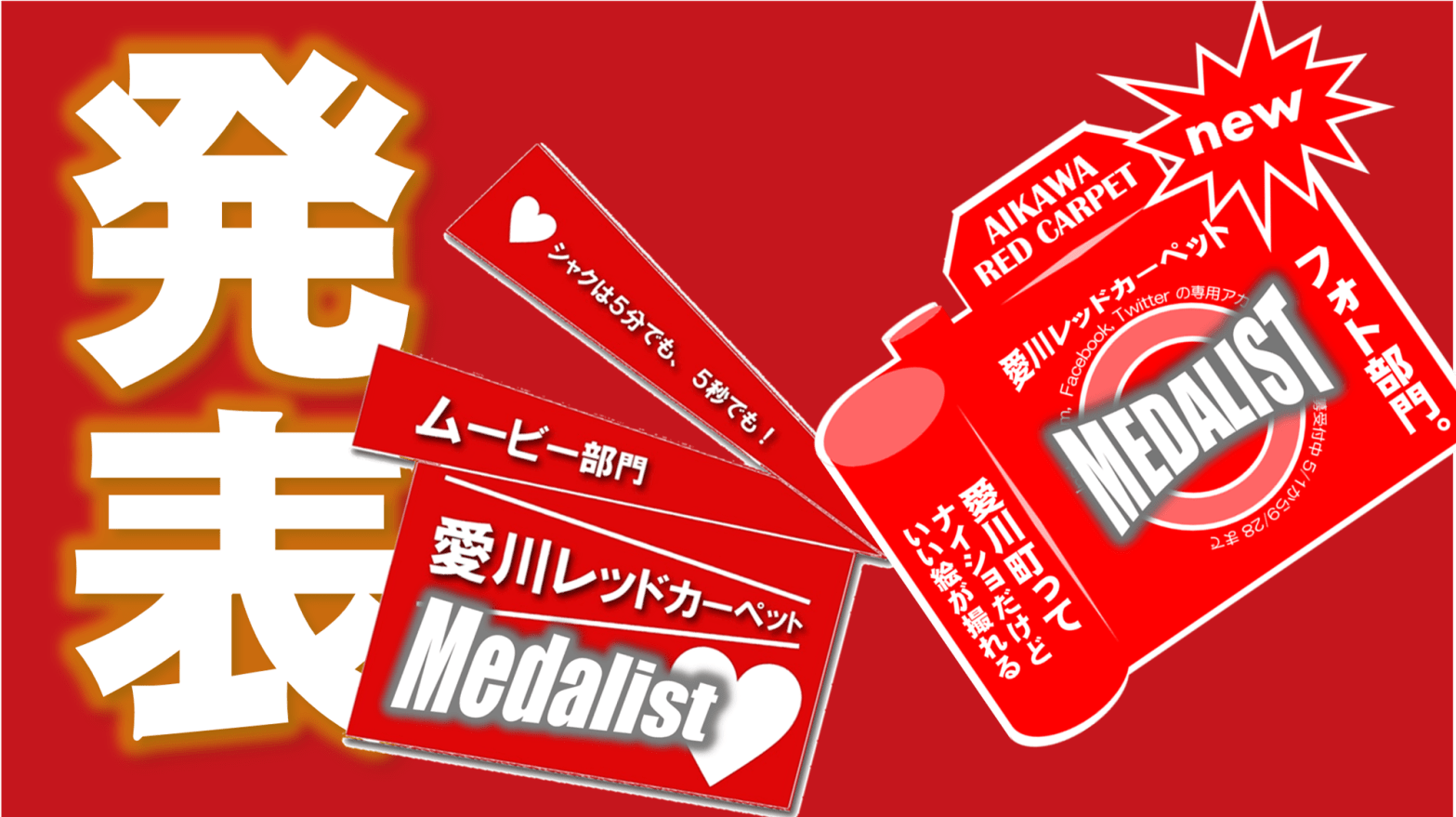 発表会のクライマックスでは、山本憲司特別審査員、そし当てコンテストの発案者であるプロデューサー”CD”から各部門の講評の後、優秀作品が発表されました!!見事「メダリスト」となった受賞者の皆さんが歓喜に沸く中、小野澤豊町長から賞状、賞金が手渡されるとともに、とってもカワイイ愛川レッドカーペット特製「メダル」が首にかけられました。