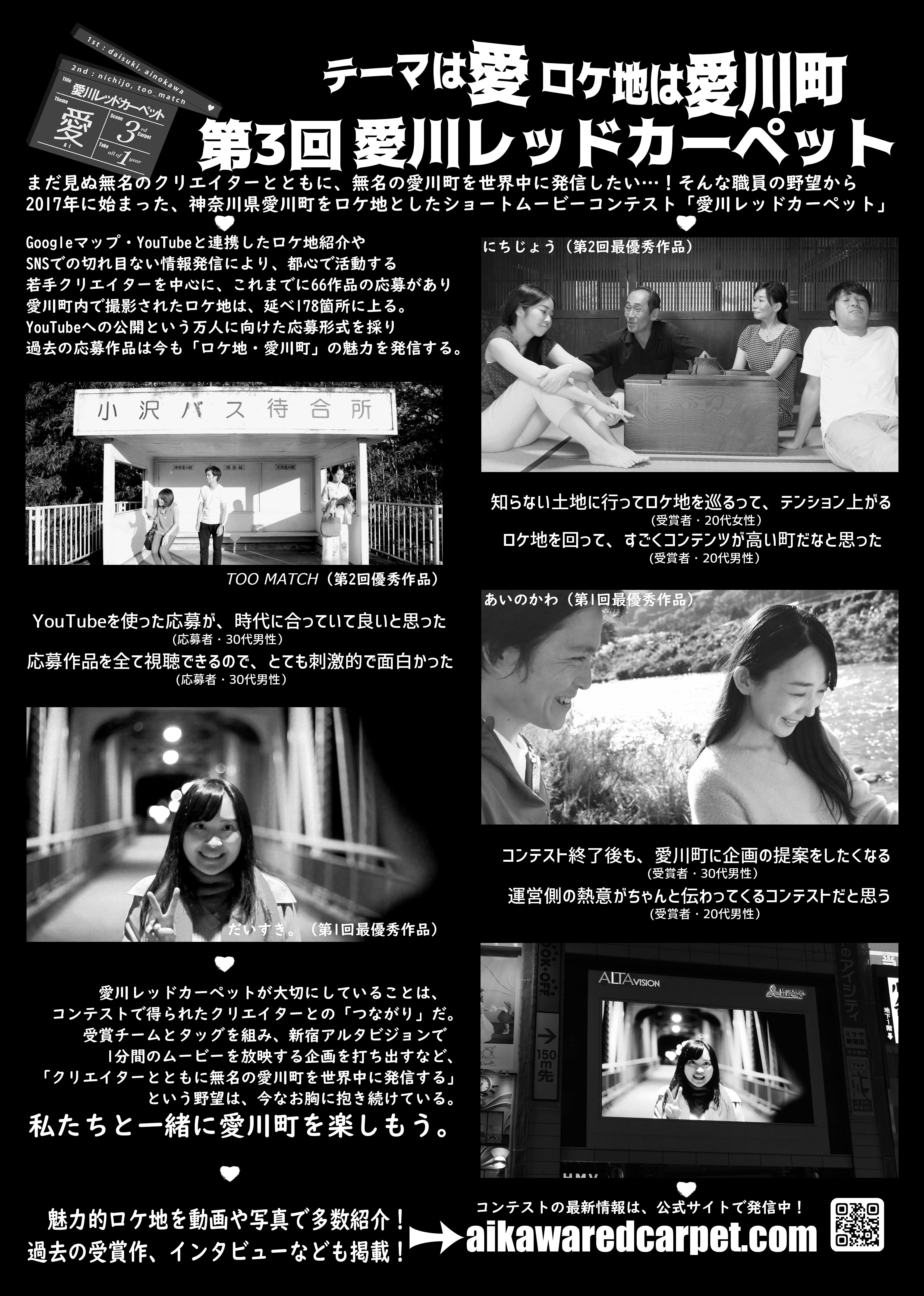 2017年の立ち上げ以来、愛川町をロケ地とした「愛川レッドカーペット」は、クリエイターの皆様と手を取り合いながら、共に大きく飛躍することを夢見るコンテストを目指し、取り組んで参りました。
