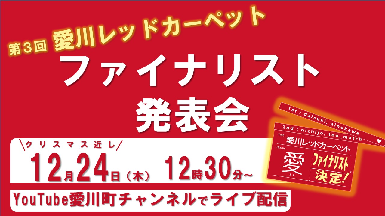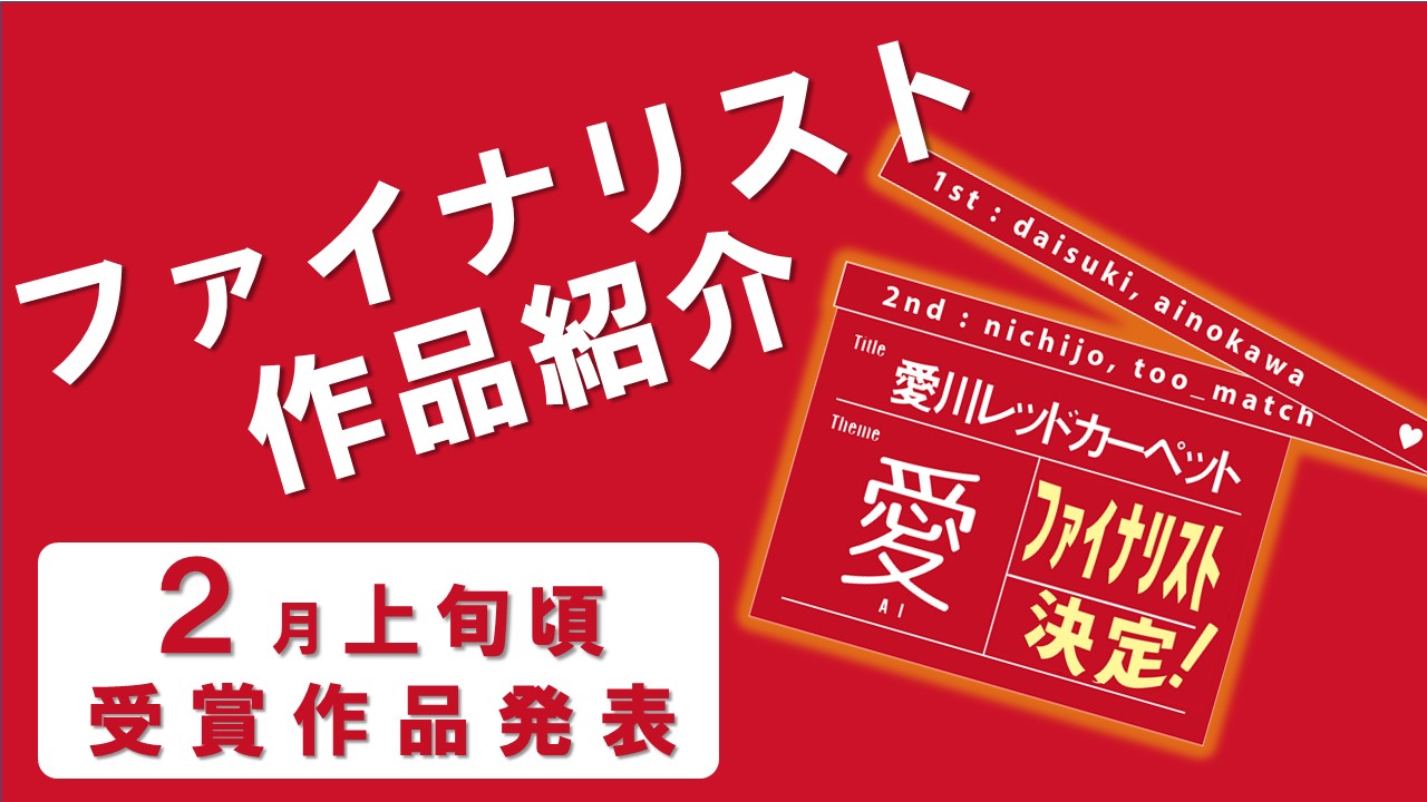 世界中の皆さん、こんにちは!愛川レッドカーペット運営事務局のシュニンです! 12月24日(木)お昼12時30分から「ファイナリスト発表会」をYouTubeでライブ配信しました! ↓↓↓配信の様子はコチラのアーカイブをご覧続きを読む “第3回愛川レッドカーペットのファイナリスト作品”