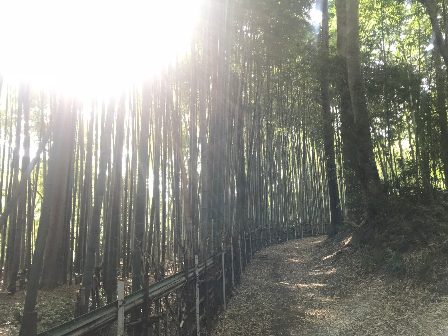 坂をほぼ下りきったところに、まるで時代劇に出てきそうな風情がある竹林が、道沿いに現れます。